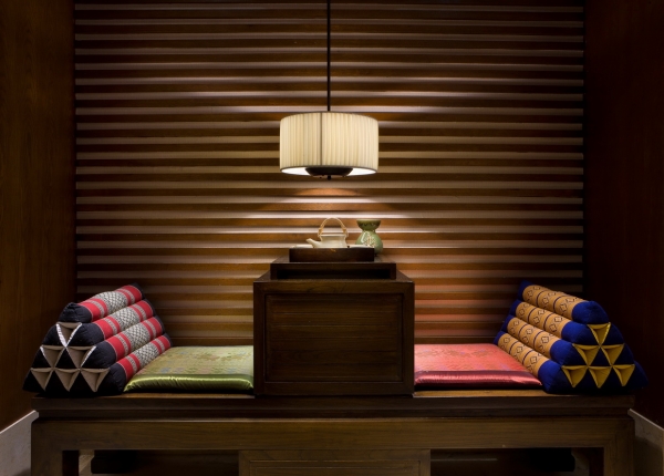 從材質到色彩再到燈光,可以看到的搭配都很和諧,拋去了泰國那種花花綠綠的感覺,沉淀下來的氣質寧靜而清幽。這其中提煉到一股精髓,即“佛”,但沒有非常夸張化,再用燈光的明暗對比來突出氣氛,不會令人覺得多了一分,或少了一分。這個系列的設計,辦公室設計公司可以參考一下,特別是燈光的把握。