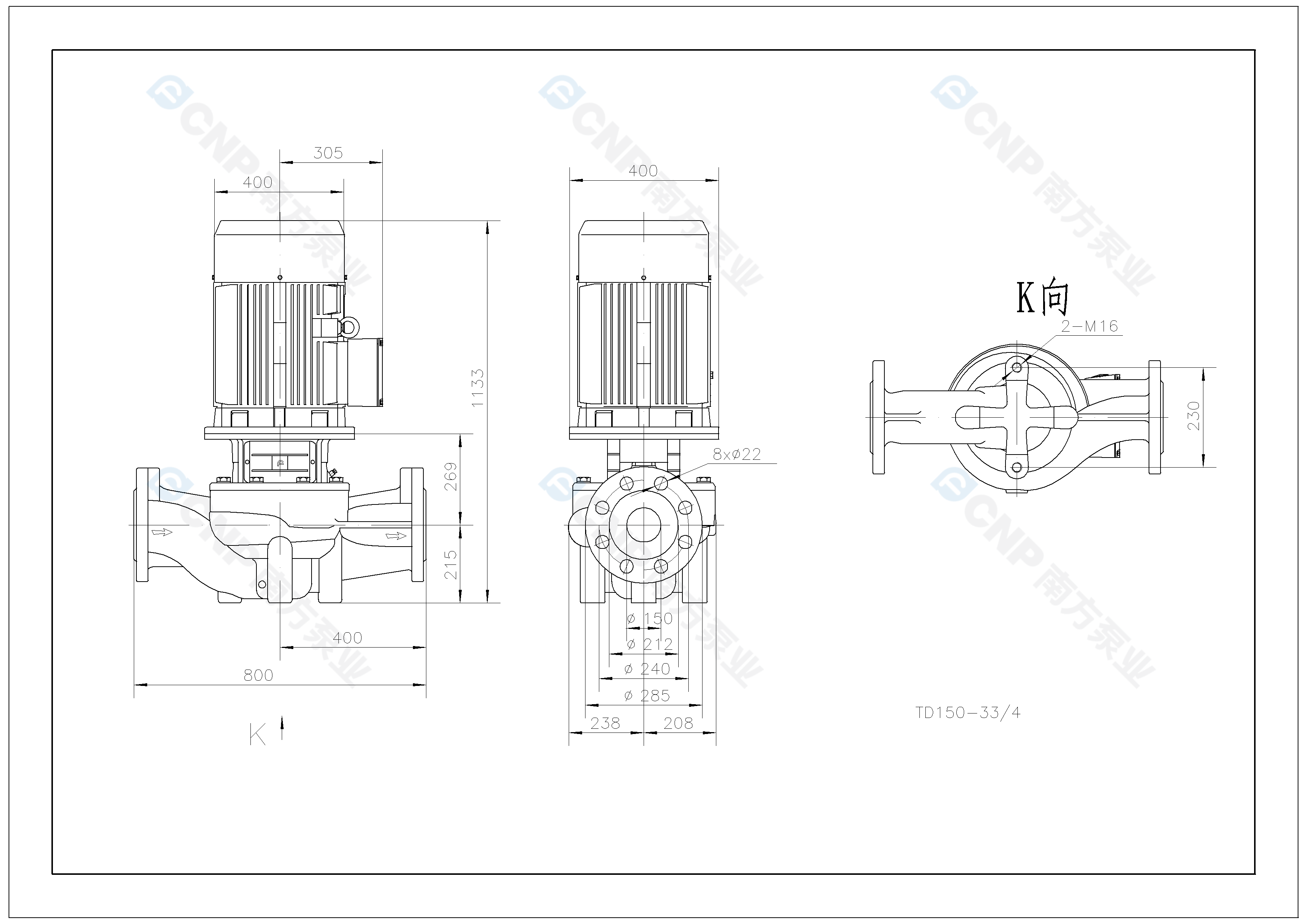 需要南方泵TD150-33/4外形CAD文件 請加銷售人員微信索取